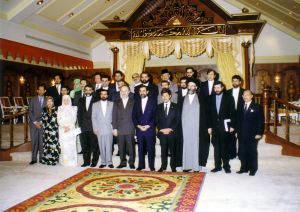 برونئی-دارالسلام-دکتر ولایتی، وزیر خارجه برونئی-علاءالدین بروجردی، حجت السلام مرعشی، اینجانب-۱۳۷۴